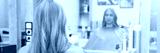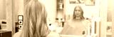 Long hair woman. Hairdresser treatment. Repair procedure. Sit at salon. Bride hairstyle. Curly styling. Adult female person. Prom lady preparation. Blonde dry. Banner, copyspace