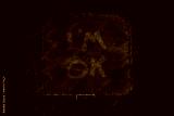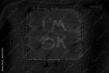 handwritten pullover label saying "I'm ok" instead of the clothing size or brand, close up macro shot of clothing tag, concept photo agains body shaming.