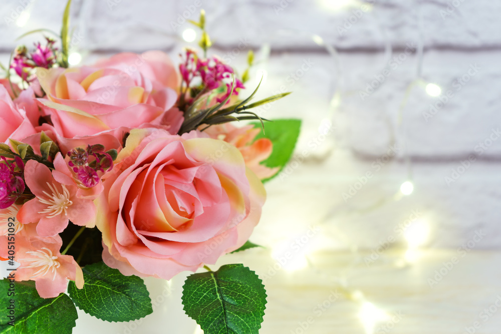Beautiful bouquet of pink roses for valentines day