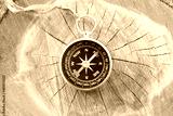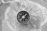 Classic navigation compass on natural background as symbol of tourism with compass, travel with compass and outdoor activities with compass