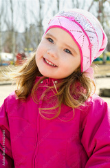 Portrait of smiling little girl outdoors on a spring day
