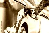 Fuel tank refilling during winter time with remains of snow on the car
