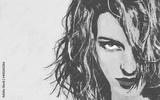 Pop art Beauty woman with yellow wavy fashion hair. Sexy model girl, makeup, fashionable poster. Colorful popart retro cartoon style, face closeup, yellow background. Advertising 80s