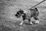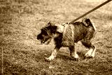 Pedigree dogs for training. Dogs are tied with a leash to a collar