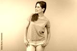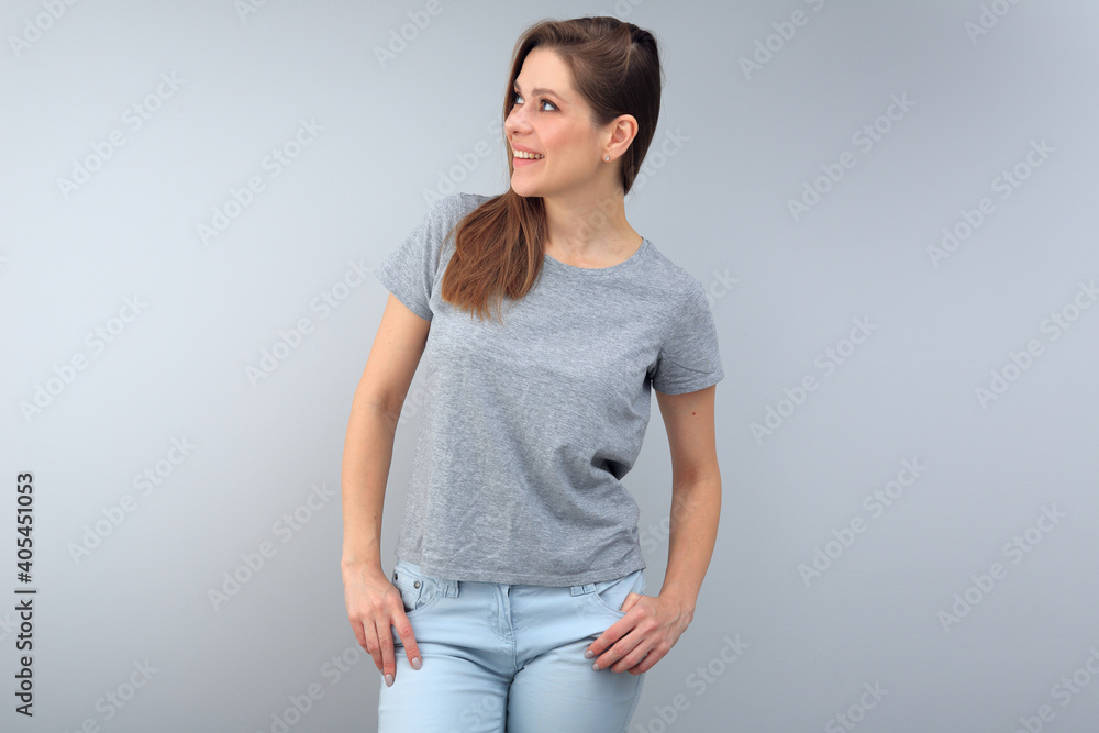 Smiling woman dressed casual looking away.