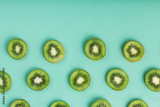 The patterns of the slices of kiwi fruit on green background as a continuous background.