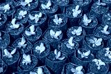 Planting seedlings or Plug of Green mache Salad Vegetable in plastic bags