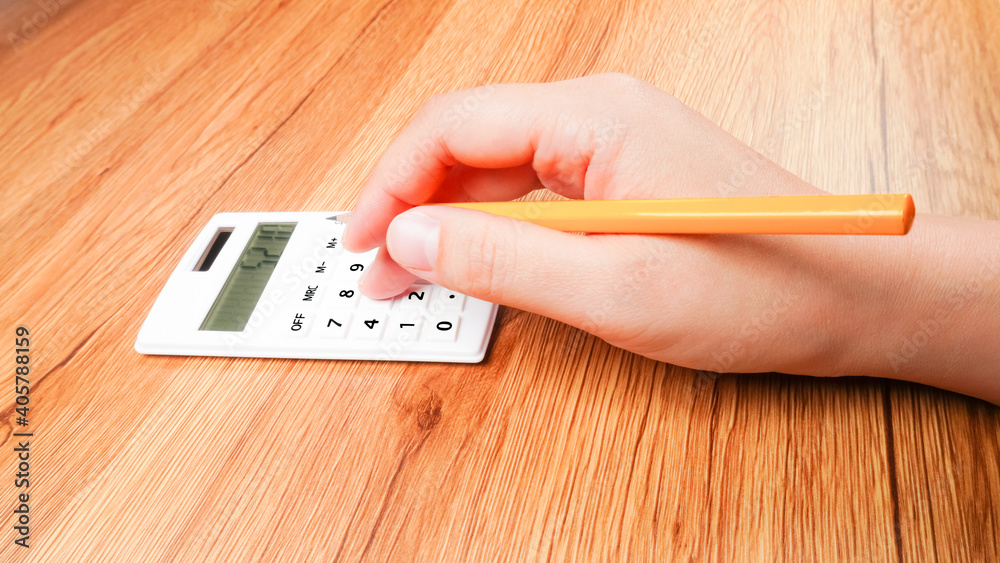 Work at home and office using calculators to calculate expenses. Background with copy space.