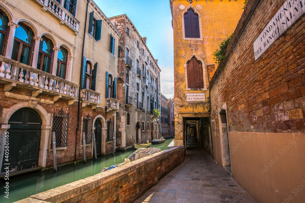 Europe. Venice. Italy. Beautiful medieval street and canal