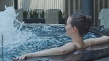 Woman relaxing in hot tube, Resting in whirlpool water in wellness spa resort.