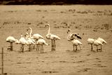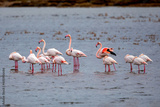 Flamingo standing in water of lagoon Kalochori.