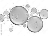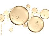 many golden yellow bubble oil or serum isolated on white background
