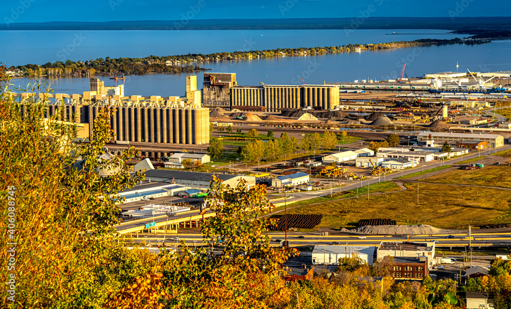 Photos of St Louis Bay in Duluth Minnesota taken from above on Skyline Parkway. Scenes of huge Silos.