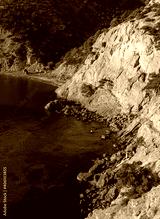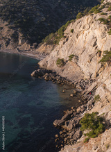 Landscape view on mountains and Black sea in Crimea, Sudak with colorful sky at Tropa Golitsina