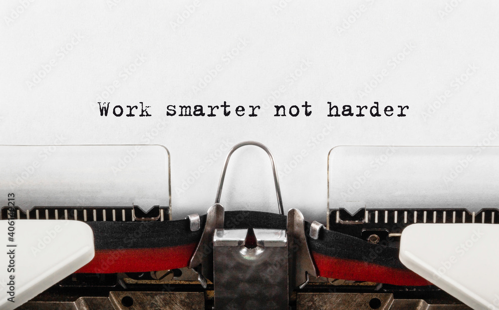 Text Work smarter not harder typed on retro typewriter