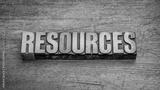 resources word abstract in vintage letterpress wood type against weathered wooden background, business, support and supply concept