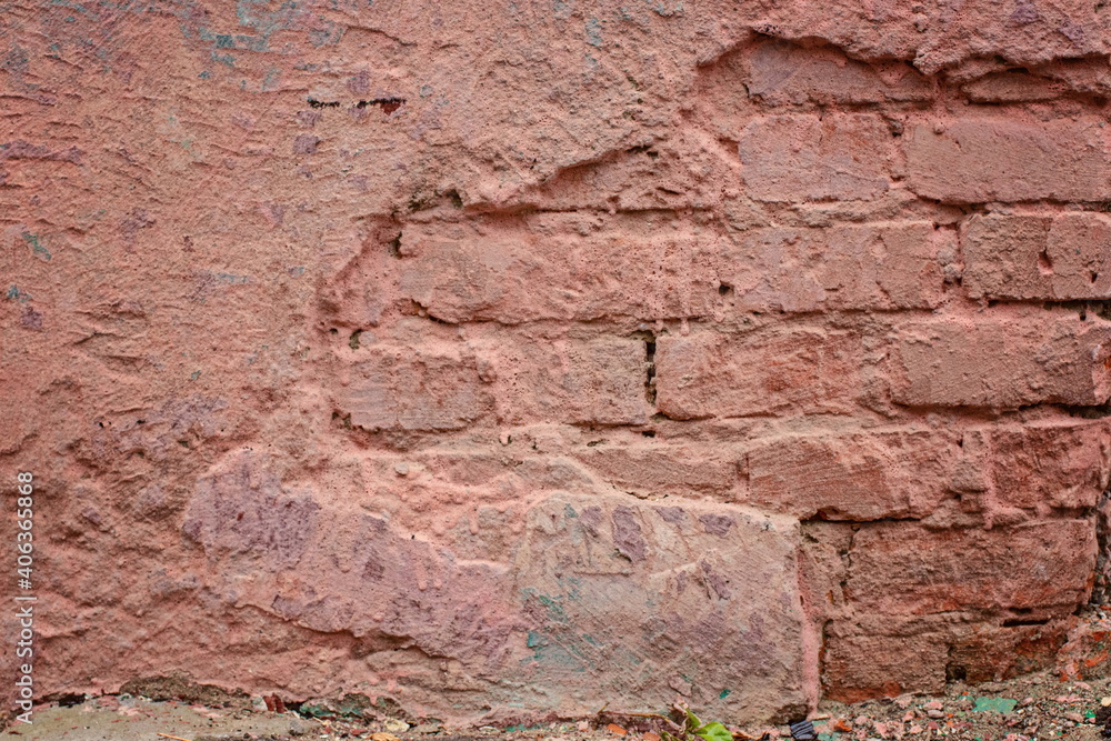 A fragment of an old wall with a bulge