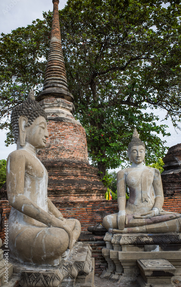 the statue of ancient Buddha in Ayutthaya