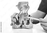 Close-up, rectum pathologies on an anatomical model. Treatment of rectal diseases, hemorrhoid