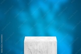 Marble Podium with Tree Shadow on Concrete Blue Wall Texture Background, Suitable for Product Presentation Backdrop, Display, and Mock up.