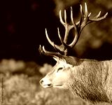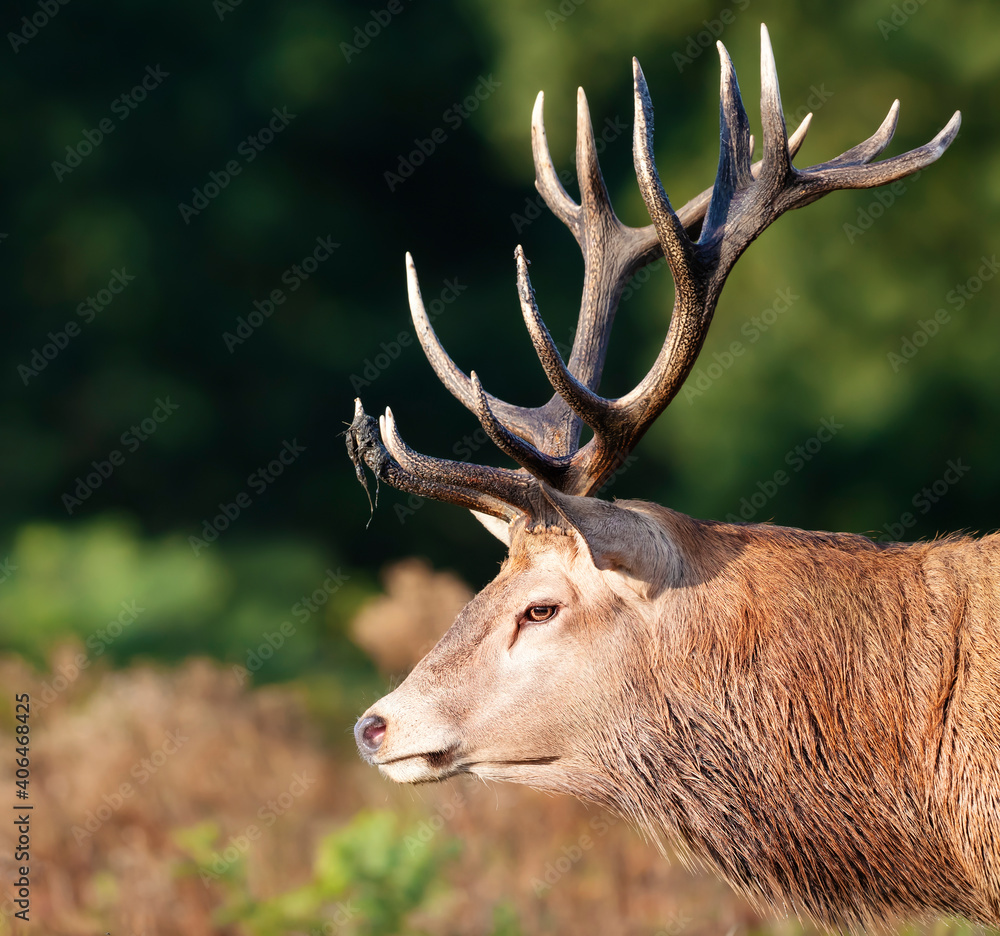 Close-up of a red deer stag during rutting season in autumn