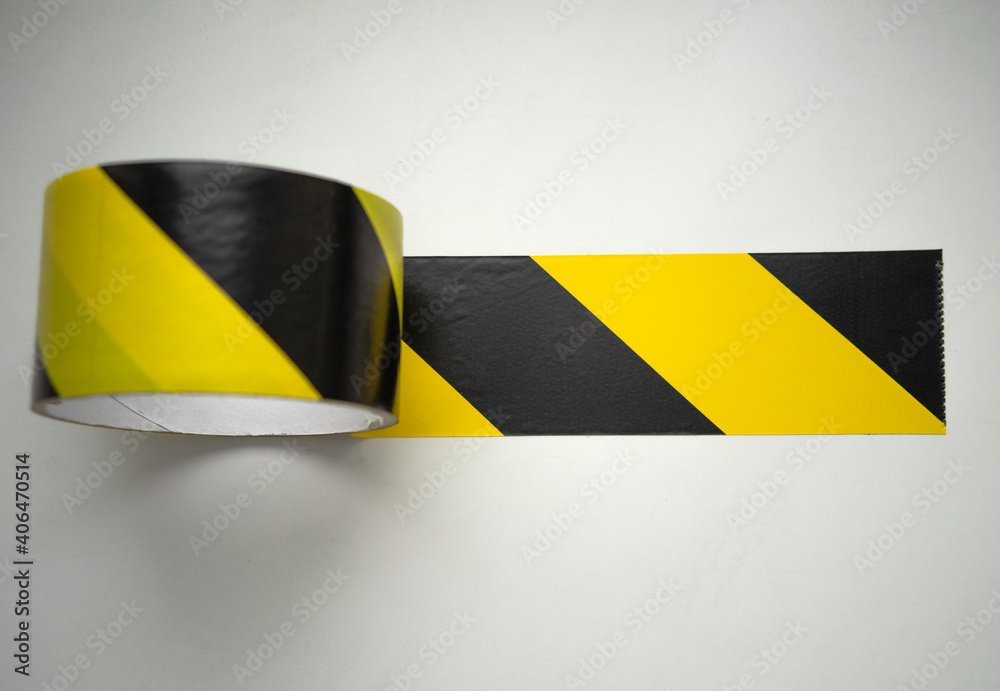 Banning roll adhesive tape yellow with black letters on a white isolate