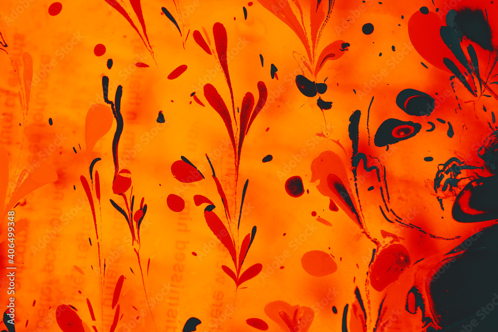 Ebru marbling Art with flower patterns. Abstract background template