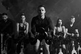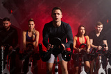 sportsman diligently riding an exercise bike in gym, the guy is exercising on a stationary bike