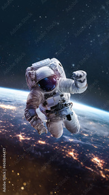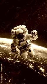 Astronaut on orbit of Earth in the outer space. Abstract wallpaper. Spaceman near surface of planet. Elements of this image furnished by NASA