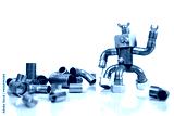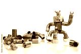 funny miniature craftsman, built from tools and materials