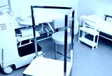 a table or stand for examining veins in a modern clinic against the background of an ultrasound machine in the office of a vascular surgeon. Phlebology, diagnosis and prevention of varicose veins.