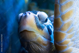 Large sea turtle. Muzzle turtle underwater