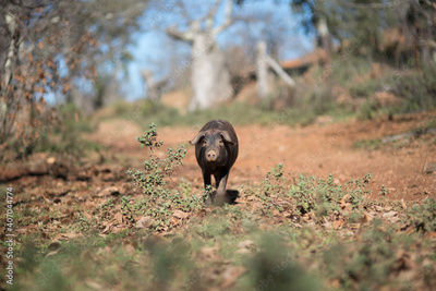 retrato de cerdo ibérico en la dehesa