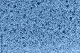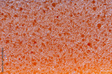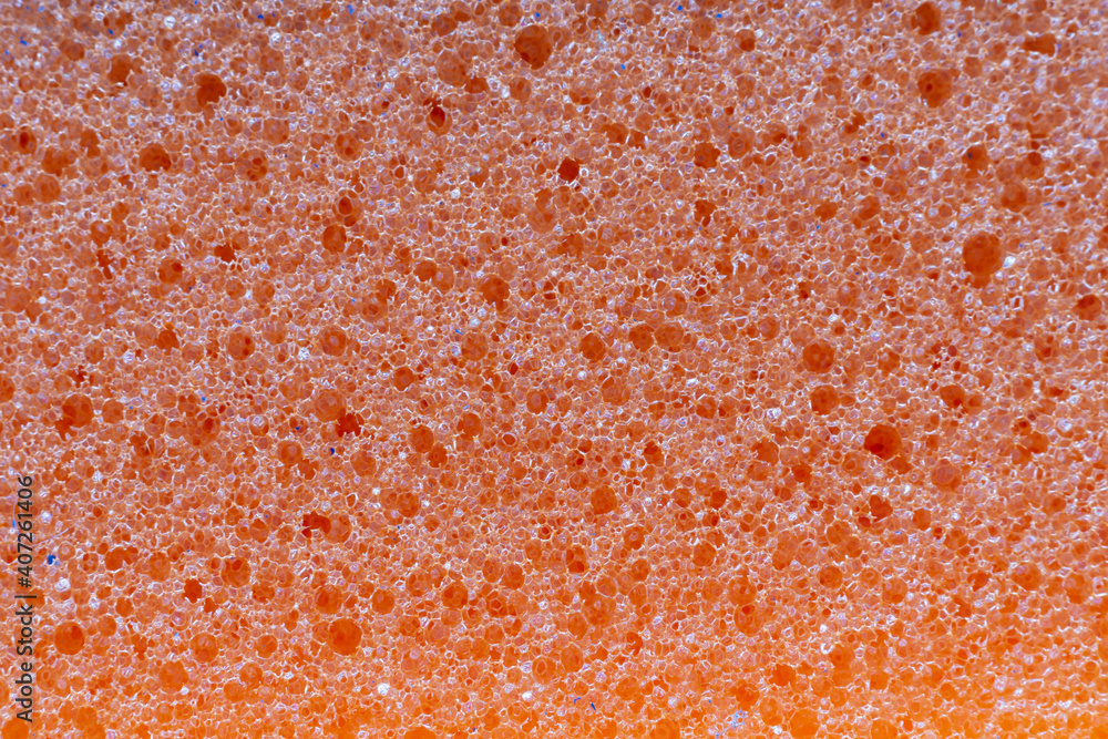 The texture of an orange washcloth sponge in close-up.