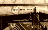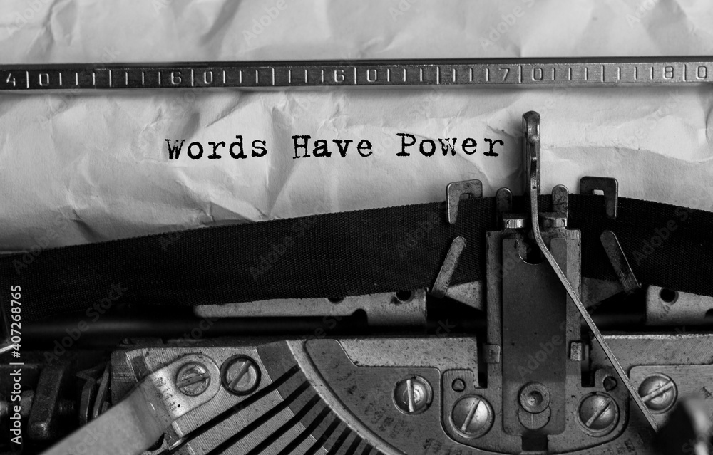 Text Words Have Power typed on retro typewriter