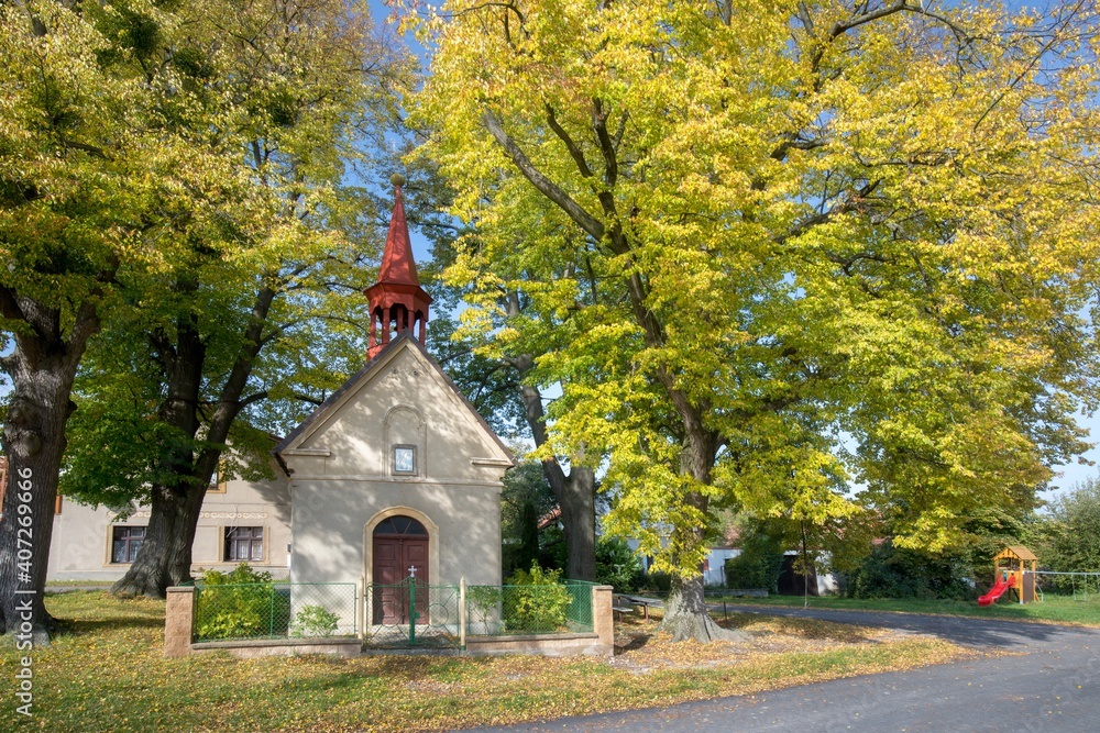 Village chapel in the Czech Republic during a beautiful sunny day. Religious building.