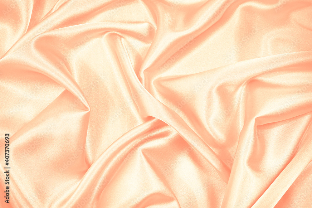 Pink cream light peach background. Soft wavy folds in the fabric. Tender. Wedding, Valentine concept. Or baby, newborn greeting card. Delicate beautiful background with copy space for design.