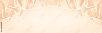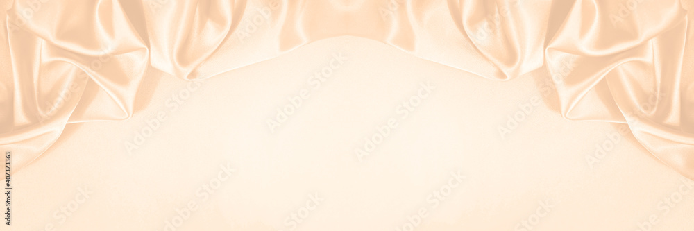 Pink cream light peach background. Soft wavy folds in the fabric. Tender. Wedding, valentine greeting card. Delicate beautiful background with copy space for design. Wide banner. Border.