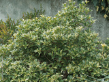 Osmanthus heterophyllus 'Goshiki' | Stachelblättrige Duftblüte 'Goshiki', Strauch mit ihrem grün und cremeweiß panaschierten und dekorativ Blätter, Ilex aquifolium-ähnlich im Winter