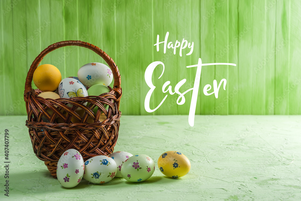 Easter colorful eggs on wooden backdrop