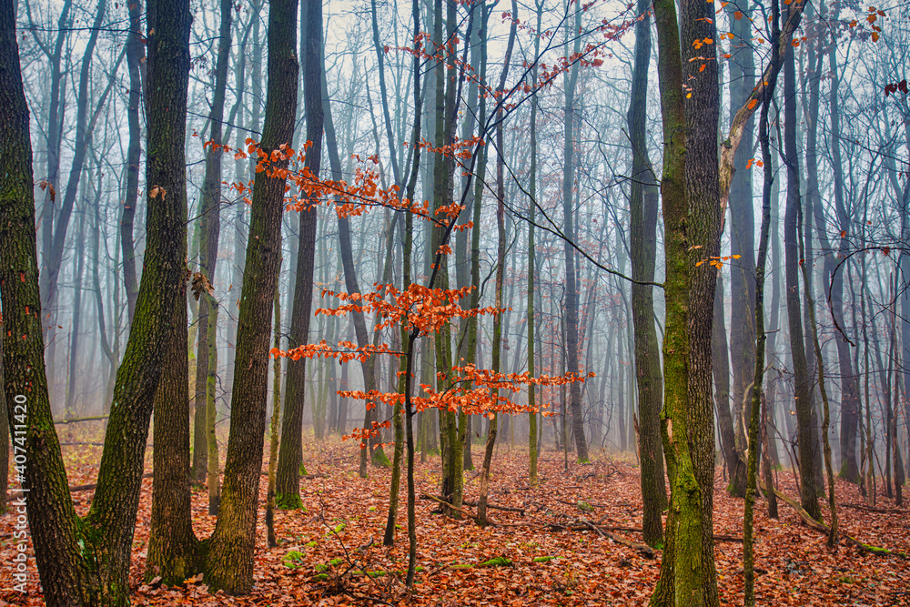misty autumn forest