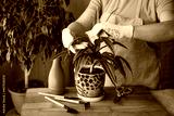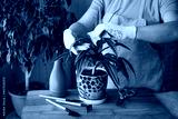 Spring Houseplant Care, Waking Up Indoor Plants for Spring. Female hands spray and washes the leaves of Dracaena fragrans house plants at home. Garden room, Biophilia trend, Living with Nature