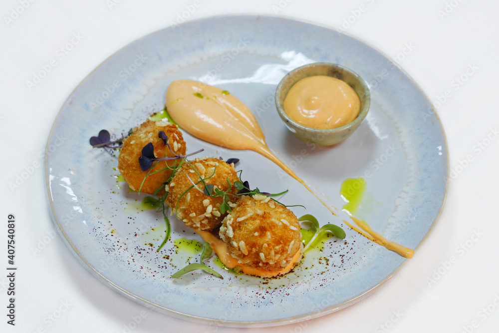 crispy crumb fried fish balls with spicy mayonnaise sauce