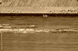 a couple of geese on a winter lake