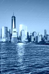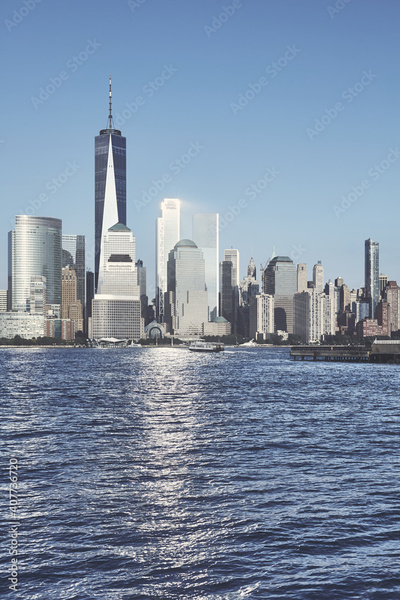 New York skyline seen from Jersey City at sunset, color toned picture, USA.