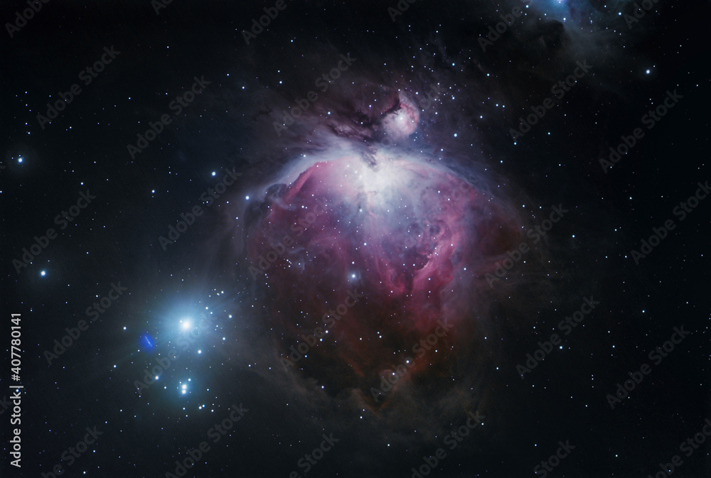 The Orion Nebula was photographed with a 350 mm f / 4 telescope