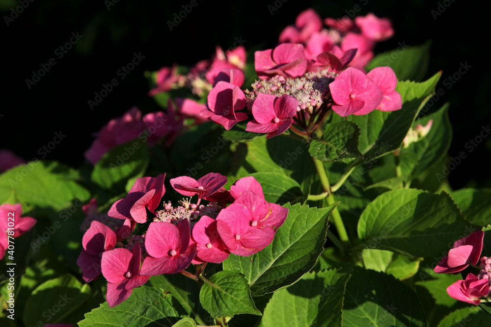Exotic pink colored hydrangea (macrophylla) close-up.
