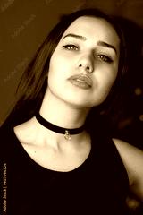 Sexy leather accessory with spikes around the neck. Defiant collar and handmade natural black leather bracelet