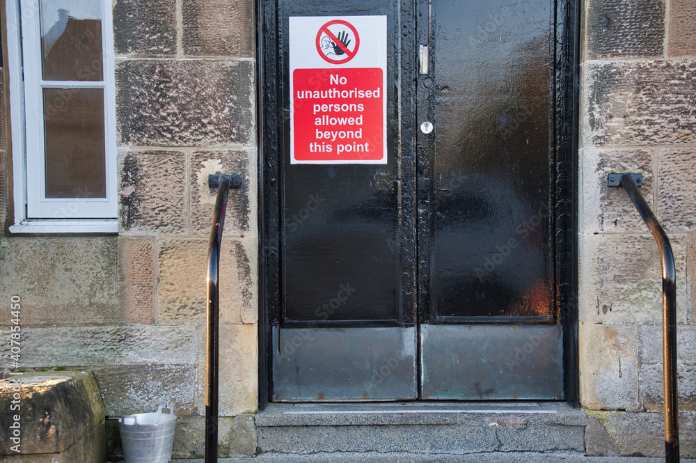 Building closed no entry sign on building door