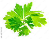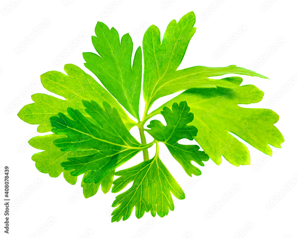 Parsley Leaf isolated on white background. Fresh Parsley herb Top view. Flat lay.